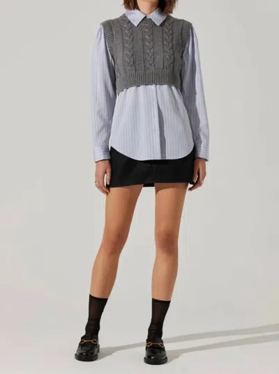 Great fit, cute design, soft fabric. You'll love everything about this long sleeve tee.Elevate your dinner party look with the Flannery Layered Cable Combo Shirt by ASTR in sophisticated Blue Grey. This long-sleeve design features a center front button closure and a collared neckline, offering both a modern and classic vibe. Composed of 50% polyester, 20% acrylic, 20% nylon, and 10% wool with a 100% cotton contrast, it is the ideal combination of comfort and style. Perfect for embodying 90s fashion trends, this piece is timelessly versatile.