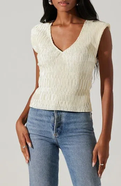 Framed with fluttery short sleeves, this lightweight top is textured in pretty plissé pleats for a fabulous tactile finish. V-neck Cap sleeves Lined 100% polyester Dry clean Imported
