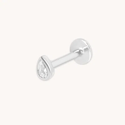 Diamond Bezel Pear Piercing Stud in Solid White Gold