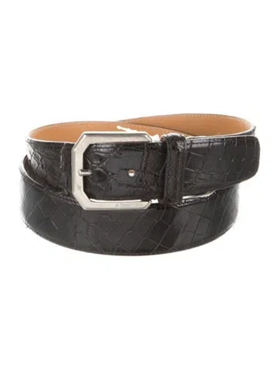 a.testoni Belt Black & Brown Crocodile Silver-Tone Hardware Peg-In-Hole Closure Unfortunately, due to restrictions, this item may not be eligible for shipping in all areas. | a.testoni Crocodile Belt in Black/Brown, Women's M