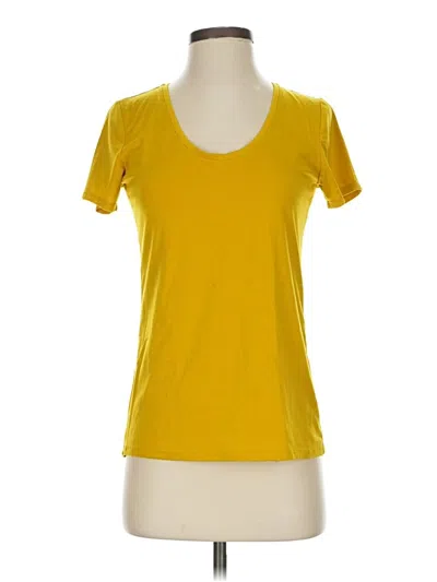 Athleta Active T Shirt, Size: X-Small. Item Details: Yellow, Scoop Neck, Short Sleeve, Velvet, Women's Activewear, Polyester/Lyocell/Spandex