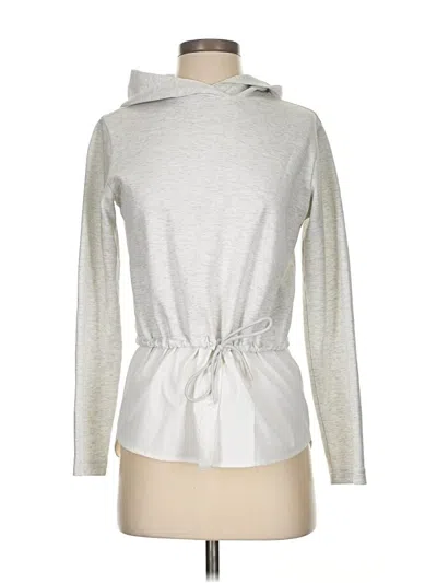 Athleta Pullover Hoodie, Size: 2X-Small. Item Details: Silver, Tie Neck, Long Sleeve, Women's Tops, Cotton/Polyester