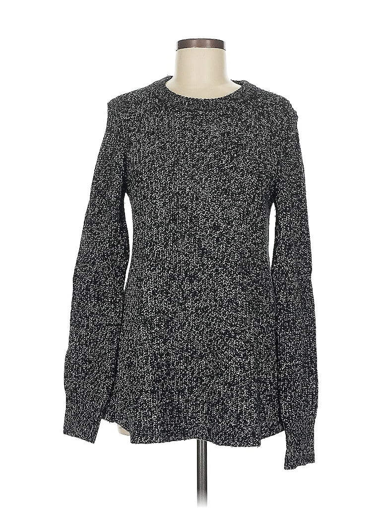 Athleta Pullover Sweater, Size: Medium. Item Details: Black, Tweed Pattern, Keyhole Neckline, Long Sleeve, Peplum, Women's Tops, Wool/Viscose/Nylon
