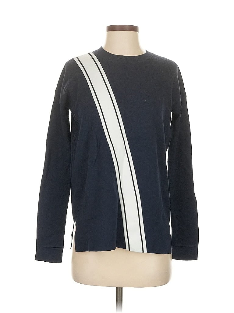 Athleta Pullover Sweater, Size: 2X-Small. Item Details: Blue, Stripes Pattern, Crew Neck, Long Sleeve, Women's Tops, Cotton/Polyester