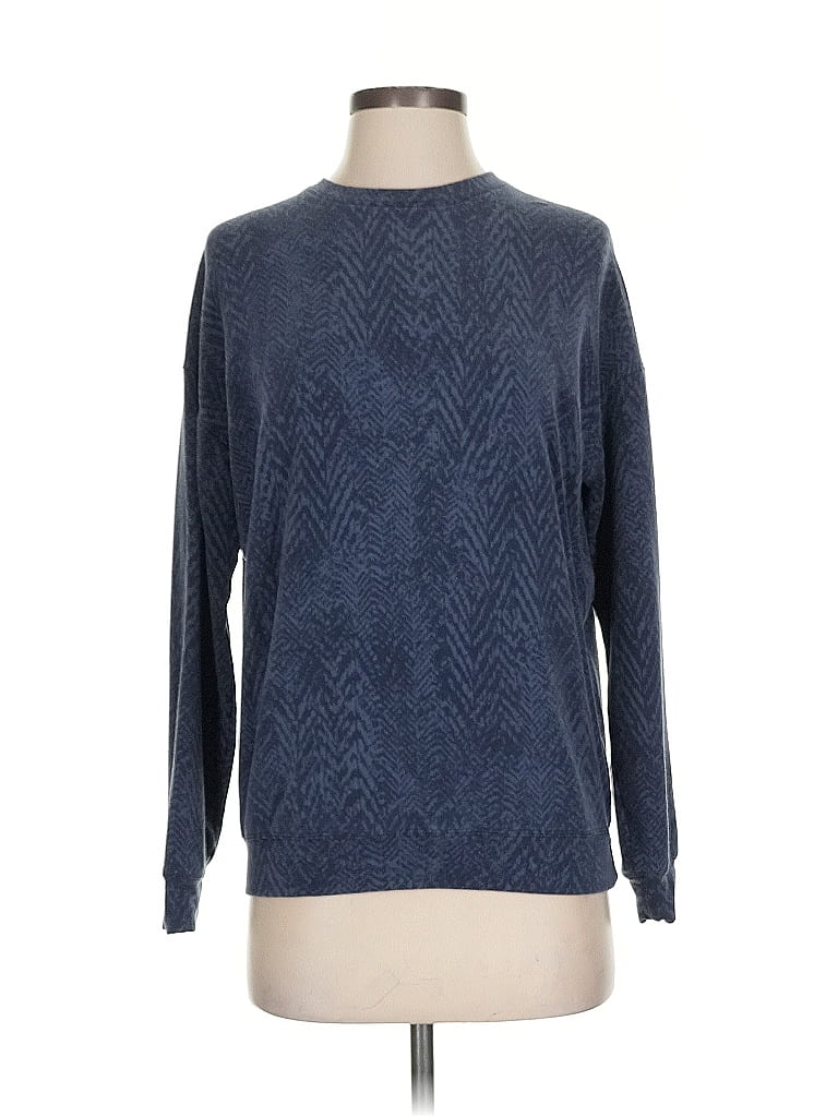 Athleta Pullover Sweater, Size: X-Small. Item Details: Blue, Chevron/Herringbone Pattern, Crew Neck, Long Sleeve, Velvet, Women's Tops, Tencel/Cotton/Modal