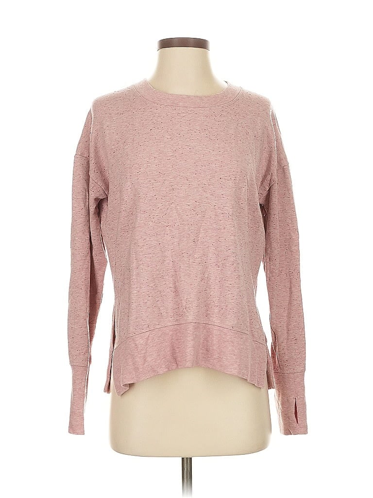 Athleta Pullover Sweater, Size: 2X-Small. Item Details: Pink, Crew Neck, Long Sleeve, Frayed Edges, Women's Tops, Tencel/Cotton/Modal