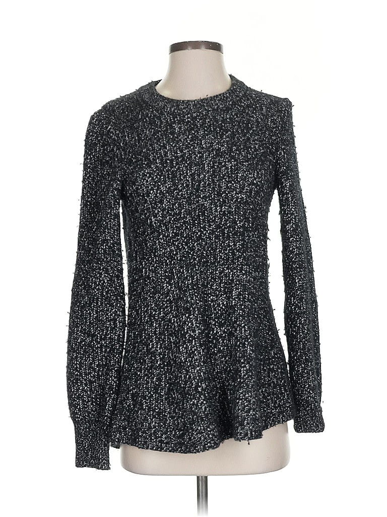 Athleta Pullover Sweater, Size: Small. Item Details: Silver, Tweed Pattern, Keyhole Neckline, Long Sleeve, Peplum, Women's Tops, Wool/Viscose/Nylon