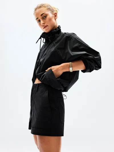 FOR: Commuting, work, and travel FEEL: Recycled Nylon blended with Spandex is lightweight and provides ease of movement FAVE: Secure zip pockets to store your essentials Two-way zipper Oversized, fits extra roomy Regular length, hits at the hip Body length in size M: Regular 25 1/4", Petite 23 3/4", Tall 26 3/4".
