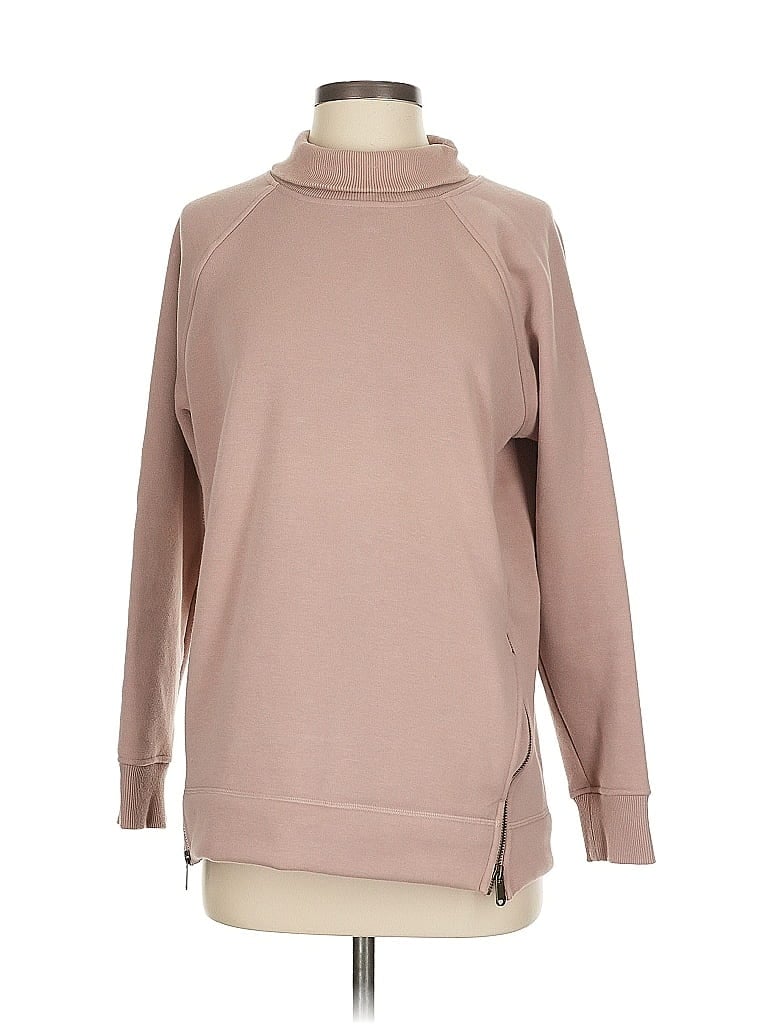 Athleta Sweatshirt, Size: Small. Item Details: Tan, Mock Neckline, Long Sleeve, Zippers, Women's Tops, Polyester/Cotton/Spandex