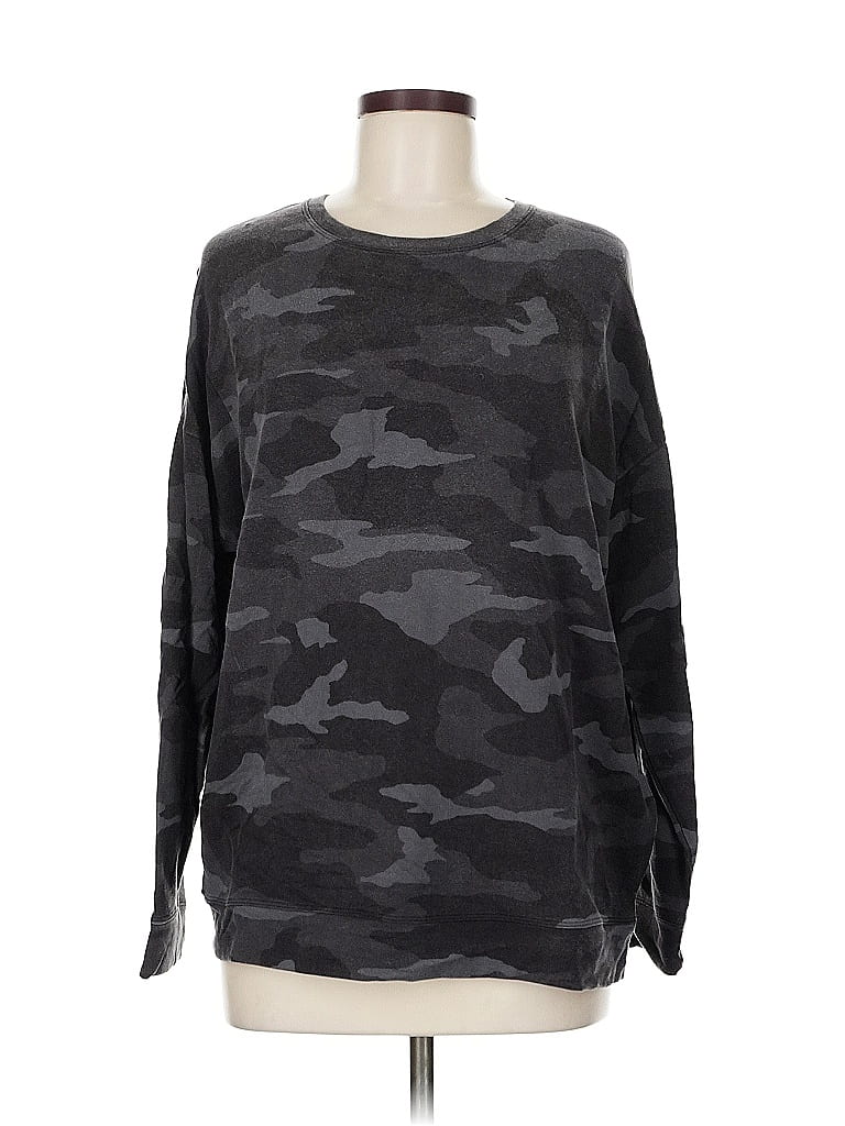 Athleta Sweatshirt, Size: Medium. Item Details: Gray, Camo Pattern, Crew Neck, Long Sleeve, Women's Tops, Tencel Lyocell/Cotton/Modal