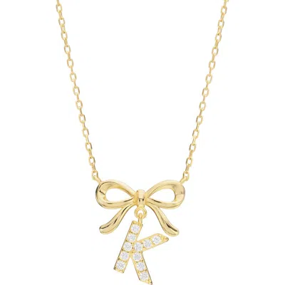 ATHRA LUXE Cubic Zirconia Bow Initial Pendant Necklace In Gold