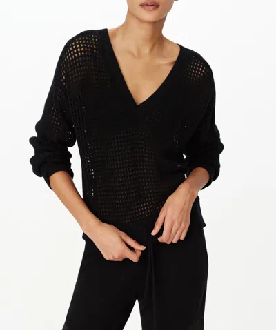 The balmy breezes will flow through this airy open-stitched sweater knit with a deep V-neck from cotton and cashmere yarn. Deep V-neck<br> Long sleeves Dropped shoulders Ribbed cuffs and hem Sheer 95% cotton, 5% cashmere Machine wash, tumble dry Imported