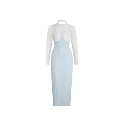 The Polly is a fitted, midi length dress with mesh contrast fabric across the bust and sleeve. A halter neck detail elevates a classic silhouette, with cut away detailing at the back and a vent at the back hem for ease of wear. FIT: This garment has been designed for a slim fit. 96% High Grade Polyester, 4% Spandex. Cold hand wash. Do not tumble dry. Do not bleach, soak or rub. Cold iron or steam. Dry clean allowed.