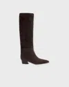 Boots Erve Walnut Suede från ATP Atelier. Erve är en knähög stövel med fyrkantig tå och en vinklad 1 cm klack, tillverkad i mjukt italienskt läder. Den eleganta pull-on-designen och den låga klacken gör den perfekt för en bekväm vardagslook. Handgjord i Italien av LWG-certifierat läder i nyansen Walnut. Normal i storleken – vi rekommenderar att välja din vanliga storlek.