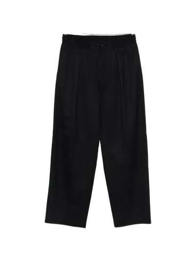 blue elasticated waistband drawstring detail two side slit pockets rear welt pocket straight leg