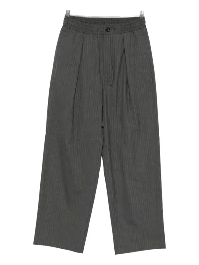 ATTACHMENT Pinstripe-pattern Drawstring Trousers In Gray