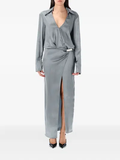 ATTICO Abito In Raso Grigio Scuro Donna In Gray