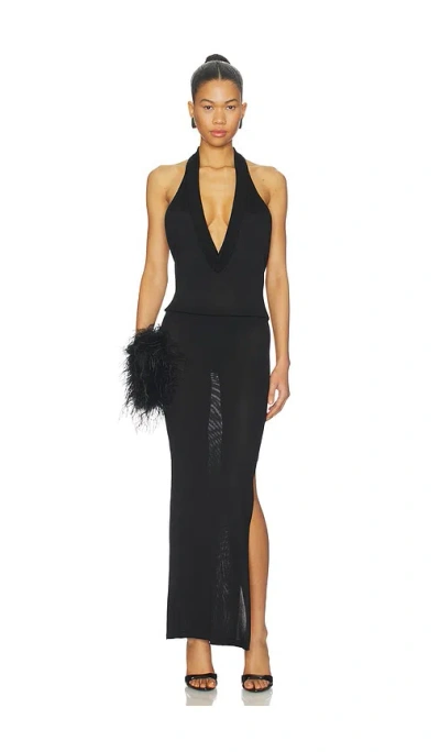 THE ATTICO Deep V Midi Dress in Black - Black. Size 40 (also in 38, 42). 100% viscose. Made in Italy. Steam inside out. Unlined. Pull-on styling. Lightweight knit fabric. Garment is intentionally sheer, undergarments will show through. Please note undergarment not included. ATTF-WD324. 260WCW00271. About the designer: Attico represents a time where glamour ruled and decadence was a way of life. Derived from the Italian word for penthouse, Attico is reviving the way a woman gets dressed. Launched in 2016, Italian designers Giorgia Tordini and Gilda Ambrosio partnered up to combine their contrasting aesthetics to push the boundaries of specialty couture. Inspired by vintage interiors and seductive boudoirs - expect pieces dripping in artisanal detail, opulent evening gowns, lavishly bold patterned silk robes, and rich textured velvets.