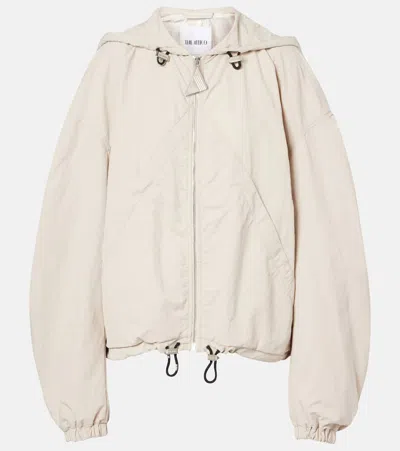 Material: 100% polyamide. Care instructions: dry clean. Made in Romania. Designer color name: Ice. Item color: gray. Lining: 100% viscose. Closure: zipped front. Pockets: zipped pockets. Cuff: elasticated. Hem: drawstring at the hem for an adjustable fit. Drawstring hood.