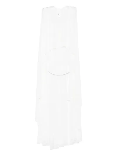 white concealed back zip fastening sleeveless floor length cape