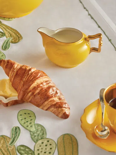 Storied ceramic house Augarten originally designed the Belvedere service in 1735, inspired by the curves of 18th-century Chinese porcelain. This piece, handmade by skilled artisans in its Vienna werkstätte, revives the finely wrought porcelain design in an up-to-the-minute contemporary hue that will bring a pop of sunshine to the breakfast or teatime table.
