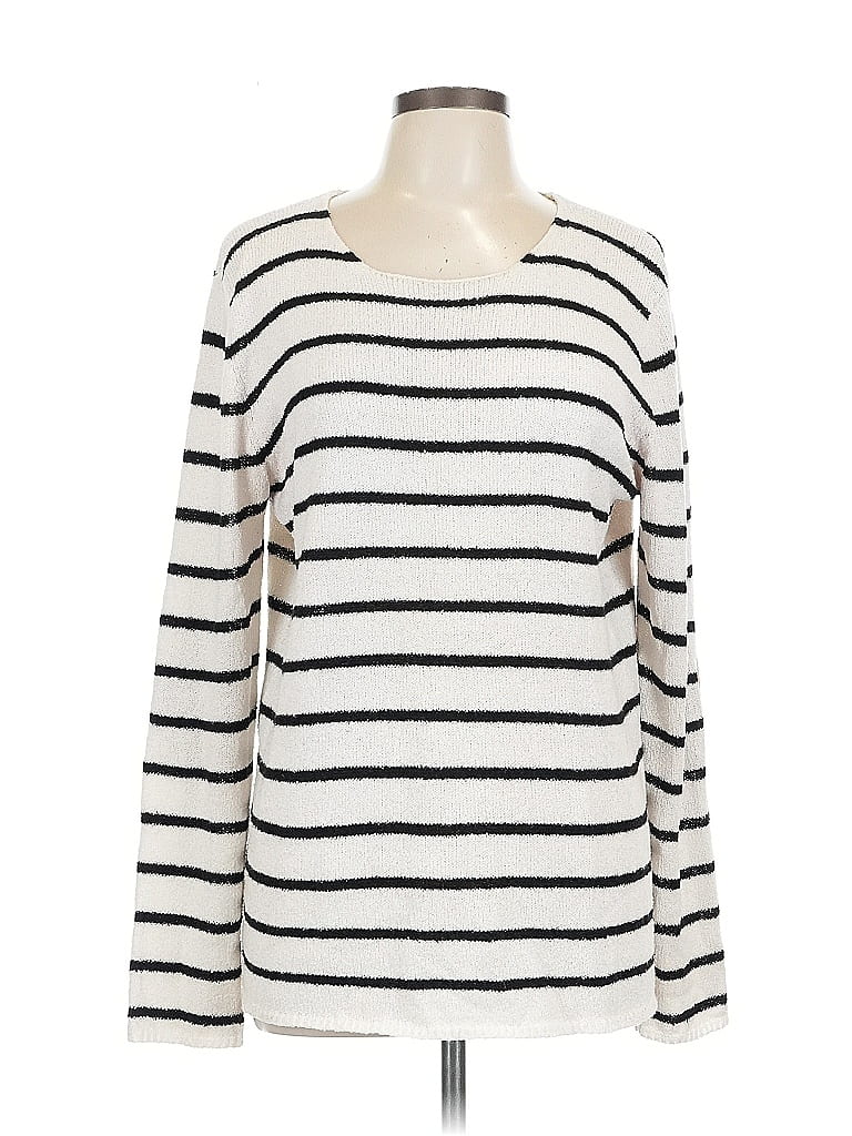 August Mist Pullover Sweater, Size: Large. Item Details: White, Stripes Pattern, Scoop Neck, Long Sleeve, Women's Tops