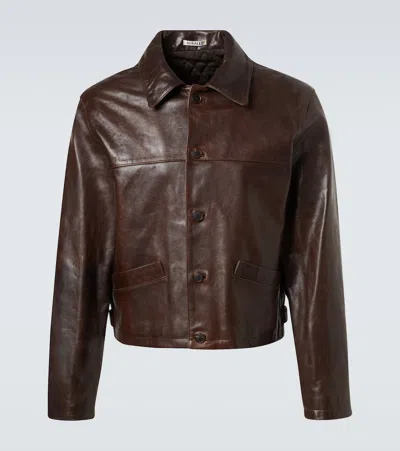 Material: 100% lamb leather. Care instructions: specialist clean. Made in Japan. Designer color name: Dark Brown. Item color: brown. Lining: 100% cupro. Filling: 100% polyester. Collar: classic (Straight point). Closure: buttoned front. Pockets: slit pockets. Leather.