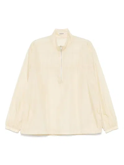 light yellow short front zip fastening two side slit pockets elasticated cuffs elasticated hem Made in Japan