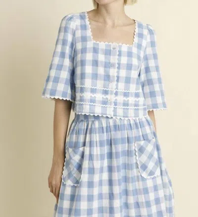 AUREUM Gingham Button Front Top In Blue
