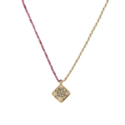 Women's Gold / Purple Three Charms Lunar Bloom Lotus Crystal Beaded Necklace Lepidolite In Multi