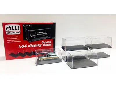 Brand new 6 Collectible Display Show Cases for 1/64 scale model cars by Auto World. Does not come with the car shown. Keep your collection dust-free with the 6-pack of display cases! Crystal-clear plastic dome with angled area for custom nameplate. Approximate dimensions - 4.25" x 2" x 1.875" case fits most 1/64 scale vehicles.