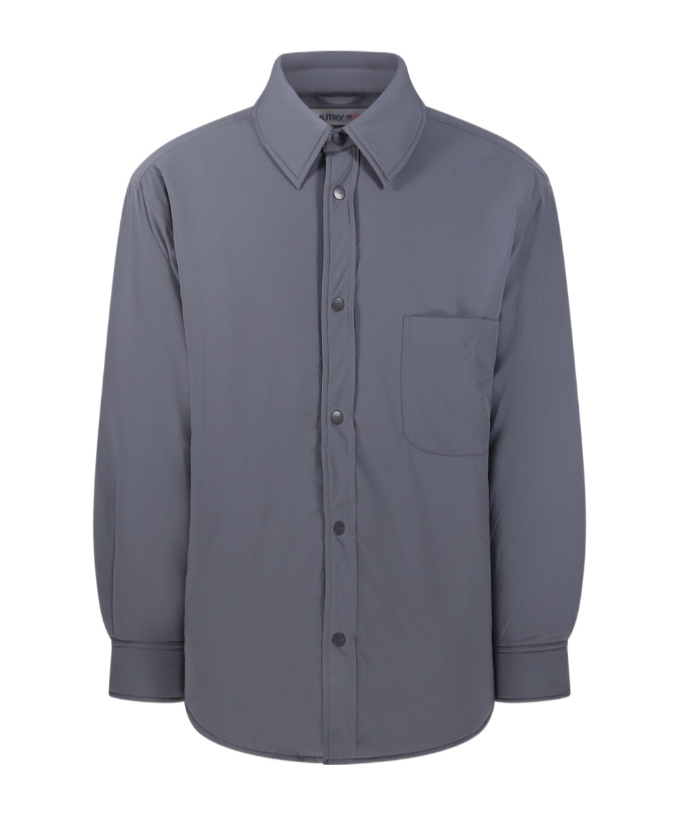 The front is decorated with buckles, a wide collar, a patch pocket on the chest, shoulder drops, long sleeves, buckled cuffs, two pockets on the side, and curved edges.