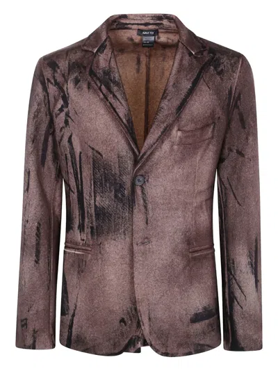 AVANT TOI Felted Rever Jacket With Black Brush Strokes Effect In Brown