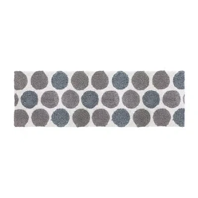 The Avanti dotted circles rug is tufted in 100% cotton in blue, grey, and white. It's the perfect finishing touch for the coordinating shower curtain, bath accessories and towels. This oversized rug is skid resistant and machine washable.Included: 1 24x60 Inch Runner(s)Features: Skid ResistantRug Backing: Heat SetRug Make: Machine MadeRug Pad: Not RecommendedShape: RectangleMeasurements: 60 Length/Inches, 24 Width/InchesBase Material: 100% CottonCare: Machine Wash, Dry FlatDecor Styles: ModernCountry of Origin: Imported