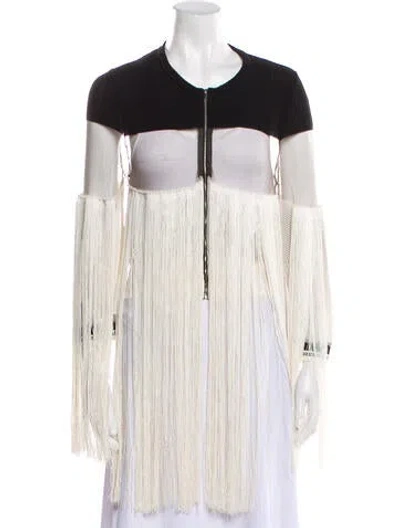 Aviu Jacket Neutrals Striped Fringe Trim Accent & Collarless Fit: Jackets by Aviu typically fit true to size. | Aviu Striped Jacket in Neutrals, Women's US4, IT40 | S