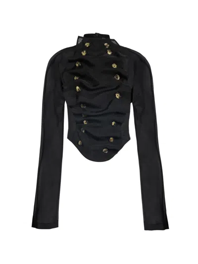 A.W.A.K.E. Bib-front Structured Blouse In Black