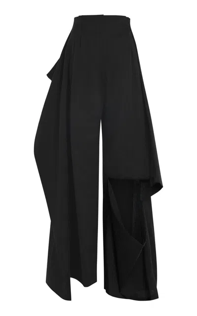 A.W.A.K.E. Flax-blend Split Hem Flared Pants In Black