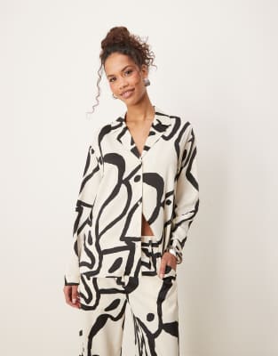 Tops by AWARE All-over print Revere collar Button placket Drop shoulders Oversized fit