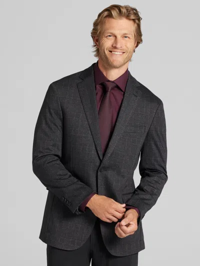 Slim Fit Plaid Sports Coat Charcoal Plaid - Size: 42 Regular In Gray