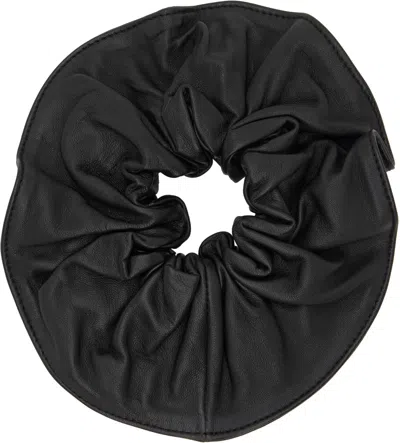 Grained lambskin scrunchie in black. D3 Supplier color: Black
