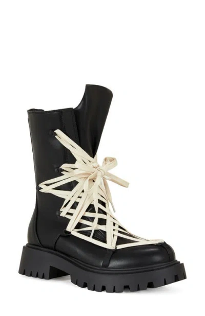 Layered laces lend statement-making style to this robust lug-sole boot that actually secures with a convenient side-zip closure for easy-on/off. 1 3/4" heel 9 1/2" shaft Side zip closure Synthetic upper, lining and sole Imported Asian & Pacific Islander Owned/Founded