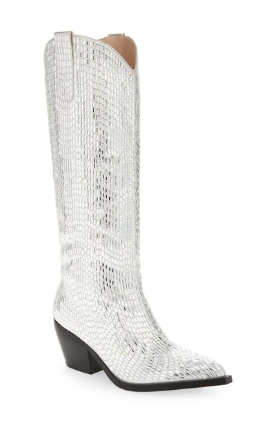 AZALEA WANG Driven Crystal Western Boot In Silver