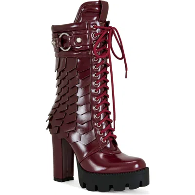 AZALEA WANG Gernot Burgundy Platform Lace Up Booties
