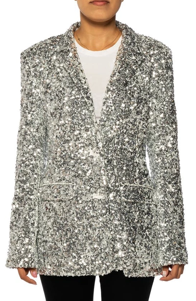 AZALEA WANG Isa Sequin Notch Lapel Blazer In Silver