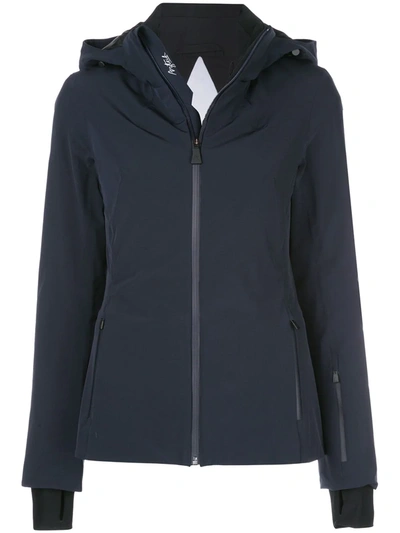 Navy and black Daly down jacket from Aztech Mountain featuring a hood, a front zip fastening, long sleeves and zipped side pockets.