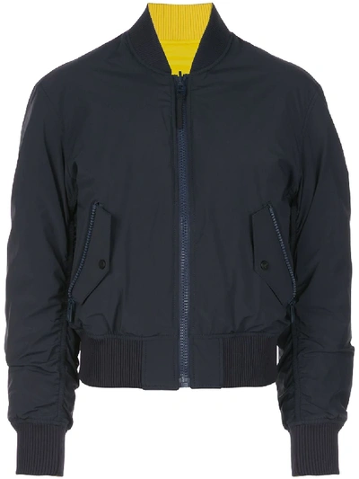 Navy and yellow feather down Silver Queen reversible bomber jacket from Aztech Mountain featuring a round neck, a front zip fastening, side pockets, long sleeves and is reversible.
