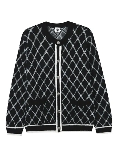 black argyle pattern button fastening two pockets ribbed hem ribbed cuffs