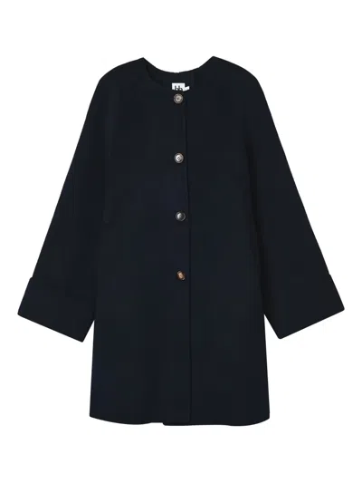 dark blue scarf detail button fastening wide sleeves front pockets wool blend
