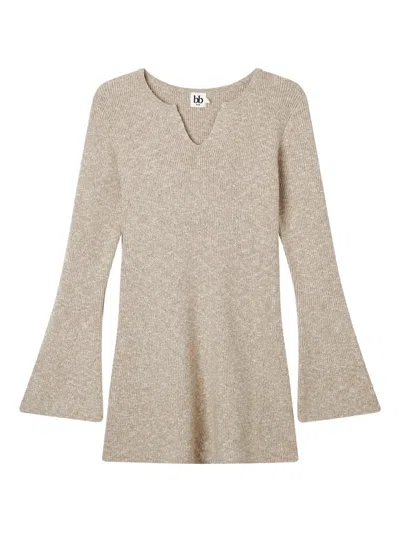 B+AB Flared-sleeve V-neck Mini Dress In Neutral