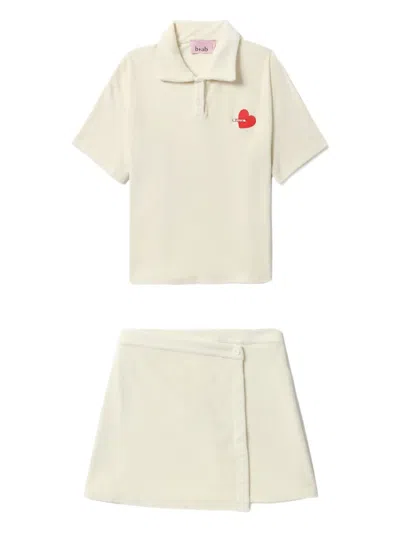 ivory heart motif polo collar short sleeves wrap skirt button fastening